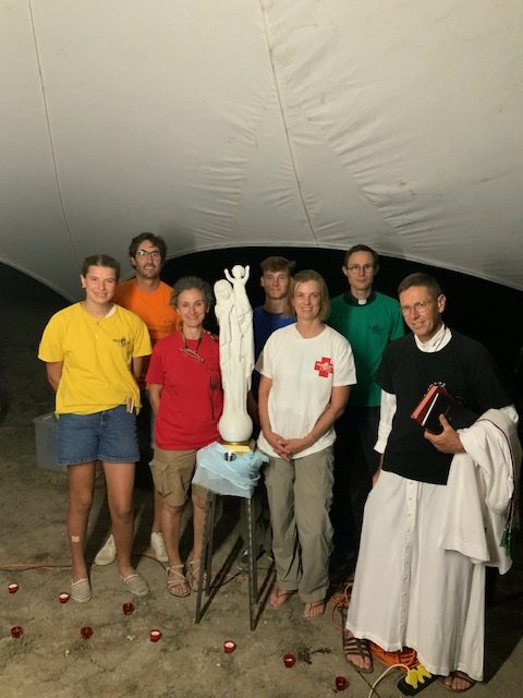 Notre archevêque est venu passer une journée, il a pédalé la journée avec les jeunes et a participé à la veillée. Il est le « GPS », le Guide pour le Salut