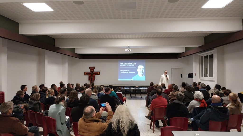 Ratraçant son histoire et son engagement, avec le support d’un riche diaporama illustré de petites vidéos et témoignages divers, le père Golfier nous a partagé le parcours professionnel, la foi et la force d’âme, mais aussi les fragilités de cet officier hors du commun, unanimement salué lors de son acte héroïque en mars 2018 et qui a donné depuis son nom à nombre de rues et d’établissements scolaires.