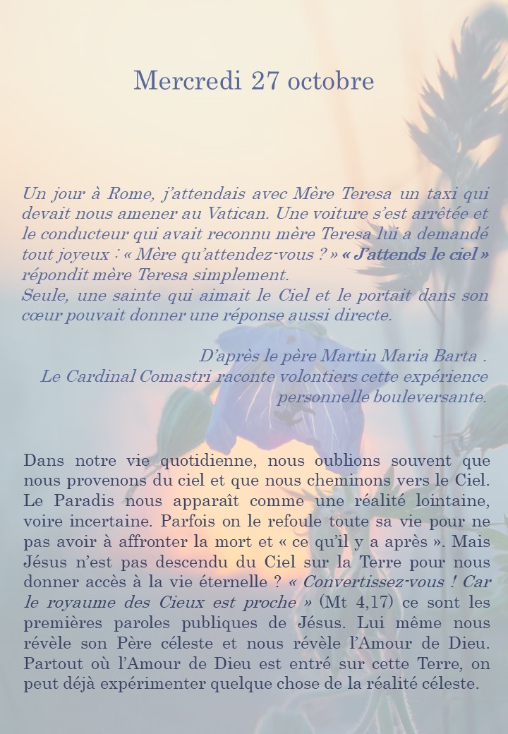 Chaque jour, découvrez une Parole de Dieu ou un texte de Saint.